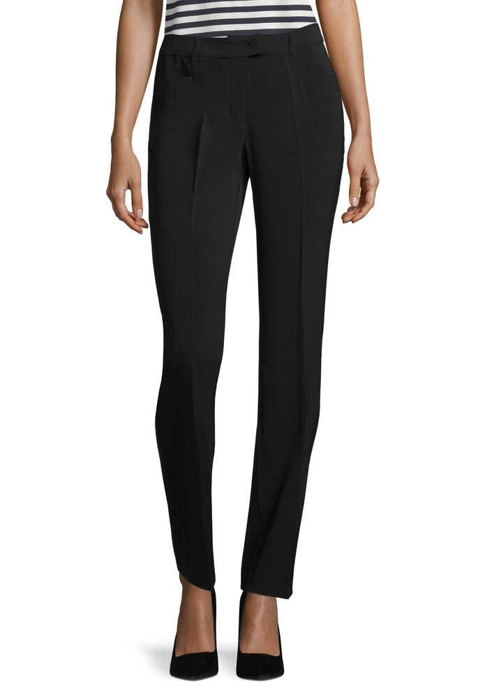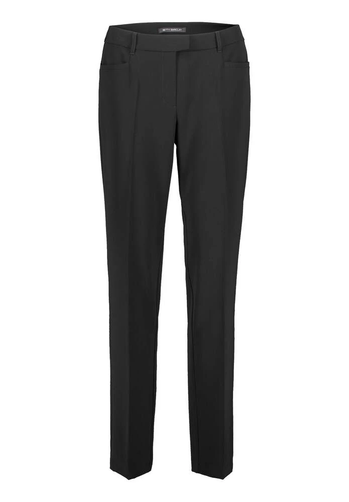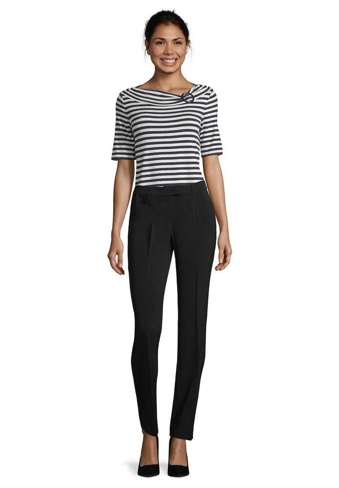 Siistit suorat housut vaakasuuntaisilla takataskuilla ja prässeillä. Joustava materiaali lisää käyttömukavuutta.