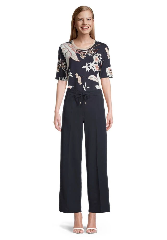Ihanan väljät yksiväriset housut vyötärön nauhakiristyksellä. Aavistuksen joustava materiaali lisää käyttömukavuutta.