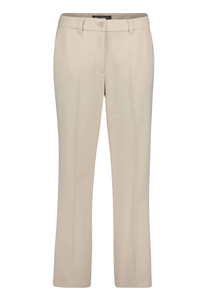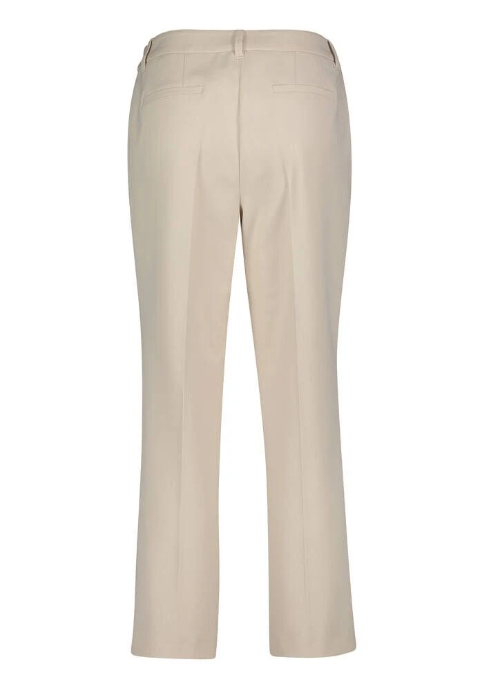Naisten vaaleat prässihousut vajaamittaisilla lahkeilla. Rento mitoitus lisää käyttömukavuutta. Tyylikkään kokonaisuuden saat yhdistämällä housut jakkuun 244733.