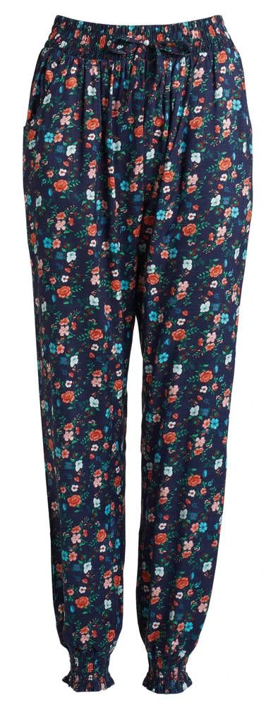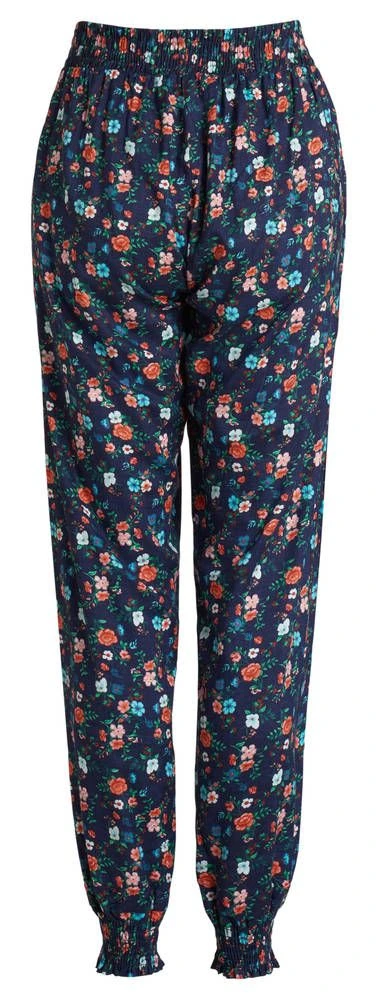 Kevyet viskoosihousut miellyttävän joustavalla kuminauhavyötäröllä ja tilavilla etutaskuilla. Vyötäröllä on solmittavat koristenauhat ja lahkeensuissa rypytetyt kuminauhakiristykset.