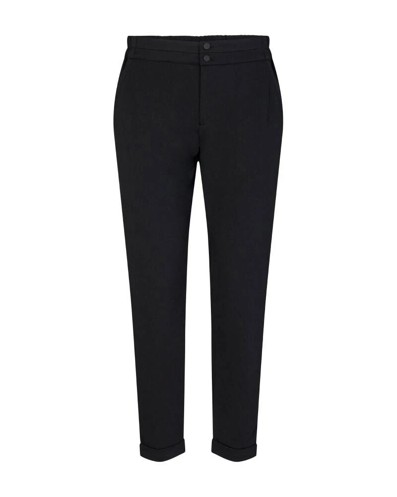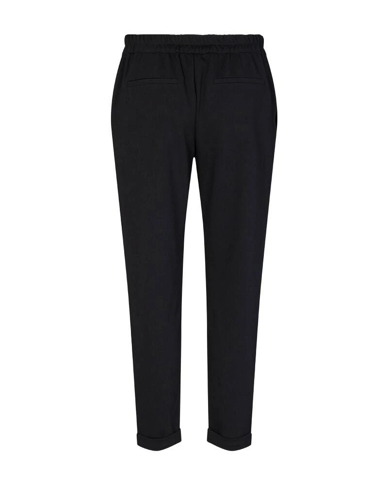 Alaspäin kapenevat yksiväriset housut miellyttävän joustavalla kuminauhavyötäröllä.