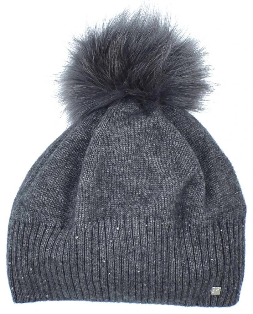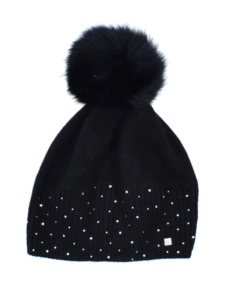 Kevyt ja lämmin strassikoristeinen pipo tyylikkäällä kettutupsulla.