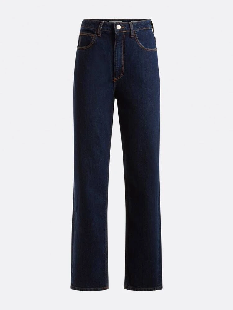 Naisten tyylikkään tummat farkut miellyttävän korkealla vyötäröllä ja kapenevilla lahkeilla.