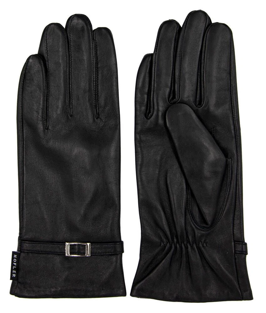 Naisten nahkakäsineet vyömäisellä koristeella.