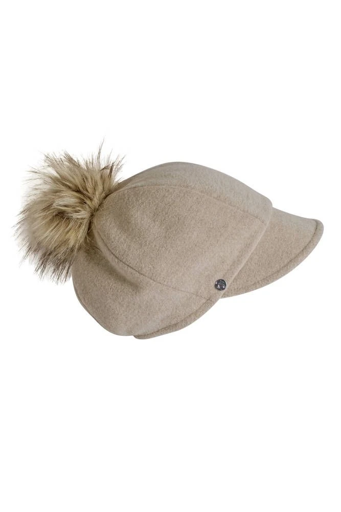 KN Kati Niemi Sofia on lippahattu naisille. Pehmeä ja laskeutuva lippahattu, jonka ilmeen viimeistelee tekoturkistupsu. Hatun käyttömukavuutta lisää takana oleva kuminauha. Hatun vuori on puuvillaa.