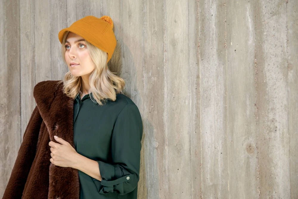 KN Collectionin lipallinen hattu viimeistelee asukokonaisuuden. Laadukkaista materiaaleista valmistetussa hatussa on villatupsu.