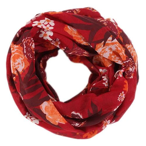 Kevyt kukkakuvioinen tuubihuivi.