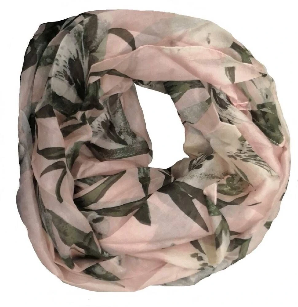 Kevyt tuubihuivi klassisella ja kauniilla lilja-kuosilla.