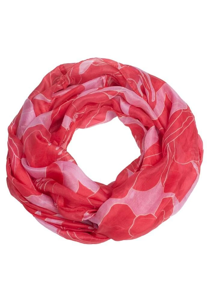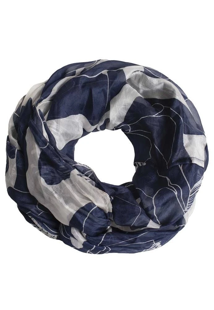 Kevyt tuubihuivi hillityllä kukkakuosilla.