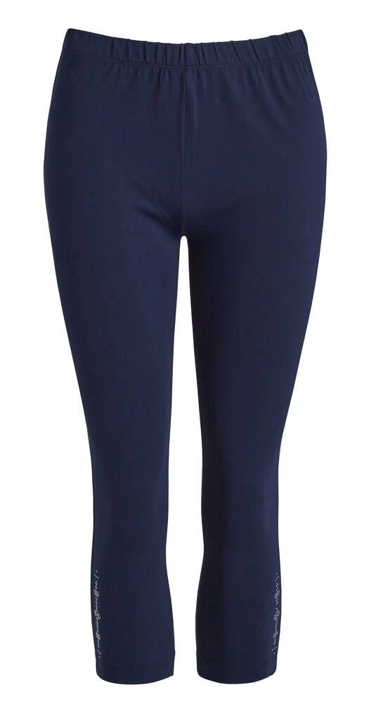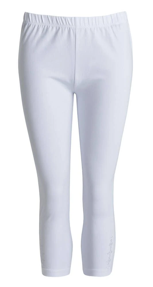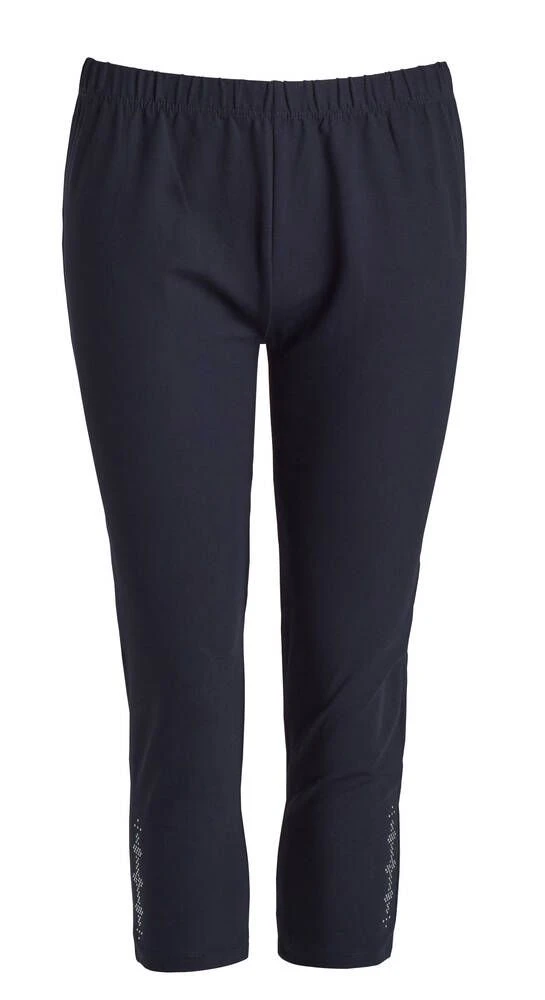Naisten caprit joustavasta materiaalista. Capreissa on kuminauha vyötäröllä ja strassikoristeet lahkeissa.