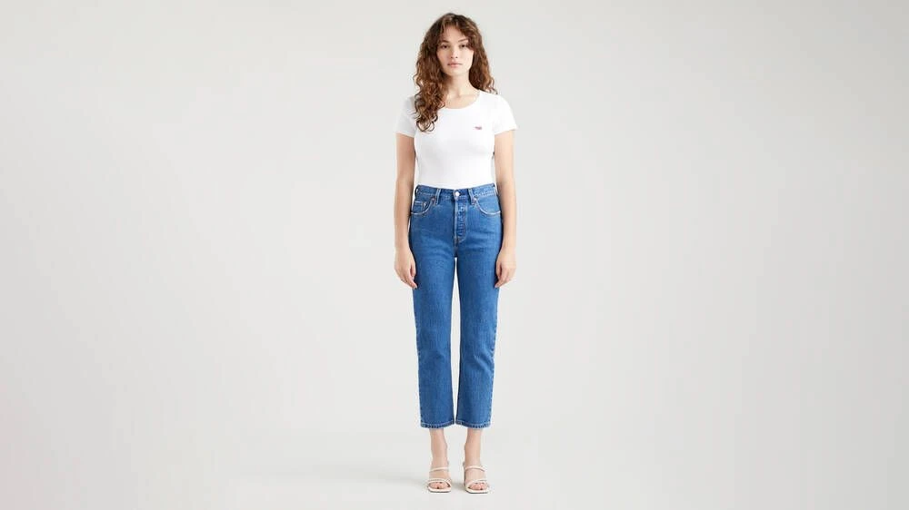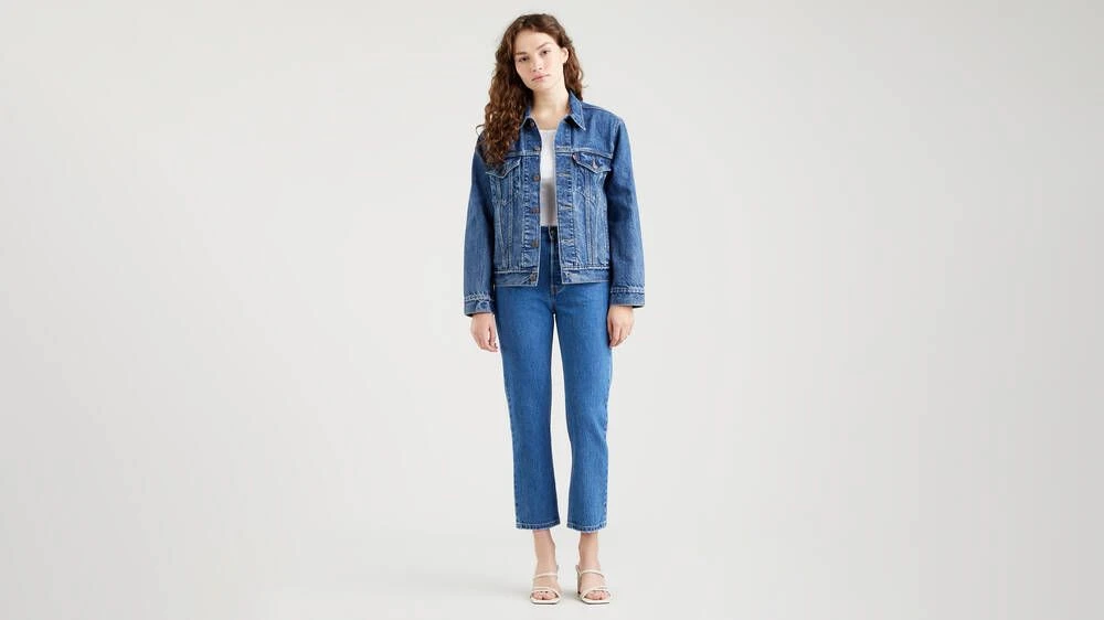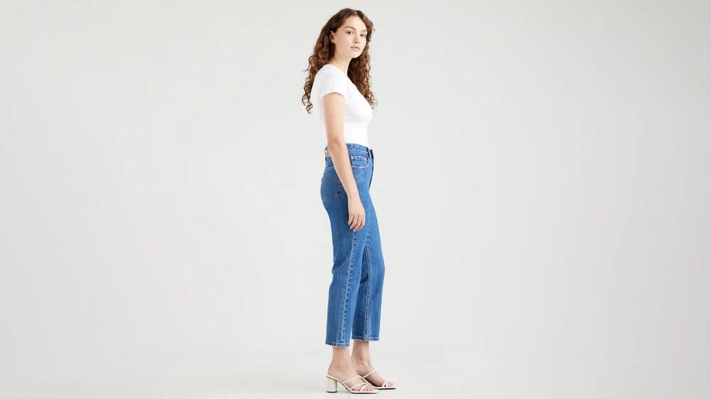 Tyylikkäät farkut suorilla, vajaamittaisilla lahkeilla ja miellyttävän korkealla vyötäröllä.