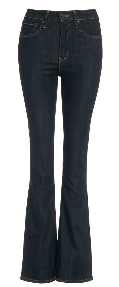 Naisten korkeavyötäröiset farkut upeilla bootcut-lahkeilla. Joustava materiaali lisää farkkujen käyttömukavuutta.