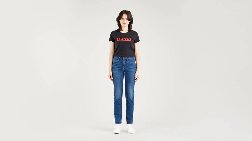 Naisten suoralahkeiset farkut kevyellä kulutuksella. Farkkujen korkea vyötärö sekä aavistuksen joustava materiaali takaavat käyttömukavuuden.