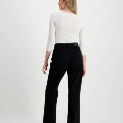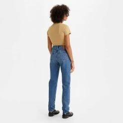 Naisten suoralahkeiset farkut korkealla vyötäröllä sekä etu- ja takataskuilla. Farkkujen joustava materiaali parantaa istuvuutta ja lisää käyttömukavuutta.