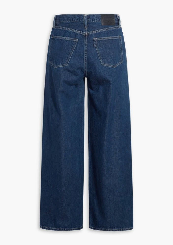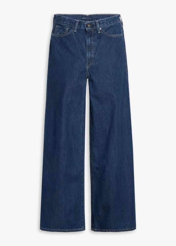 Leviksen trendikkäät leveä lahkeiset farkut. Korkea vyötärö ja istuva yläosa.