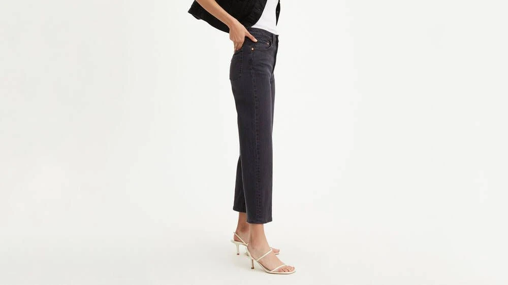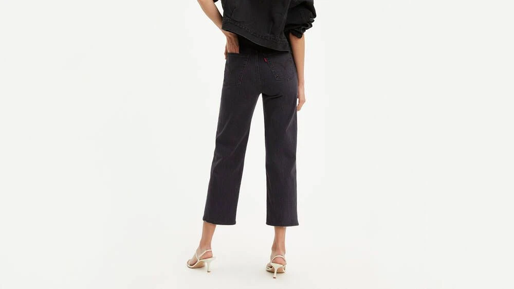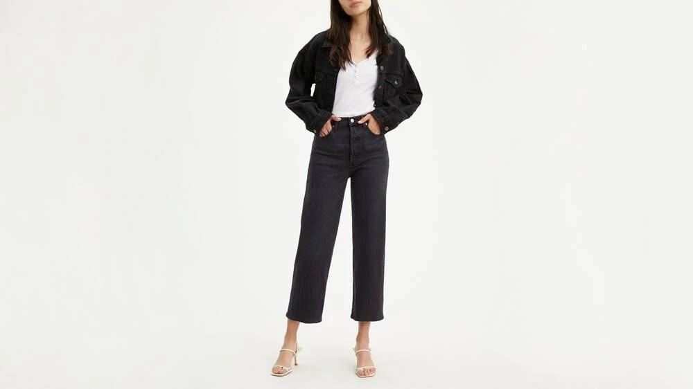 Tummat farkut leveillä, vajaamittaisilla lahkeilla ja korkealla vyötäröllä.