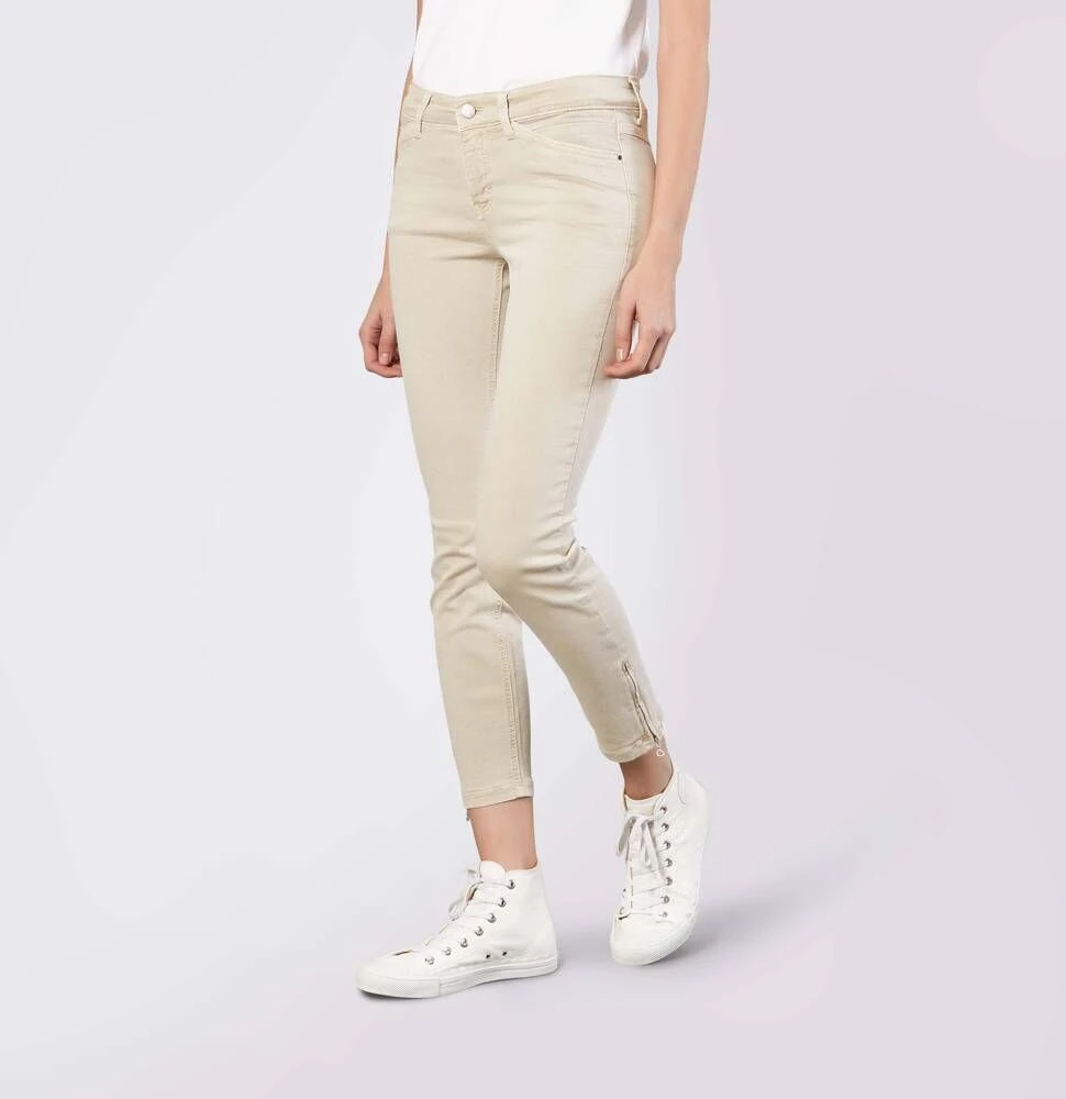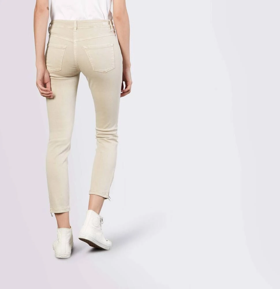 Naisten kapeat housut, jotka on valmistettu ihanan pehmeästä materiaalista. Vajaamittaisisten lahkeiden lahkeensuissa on lyhyet vetoketjut.