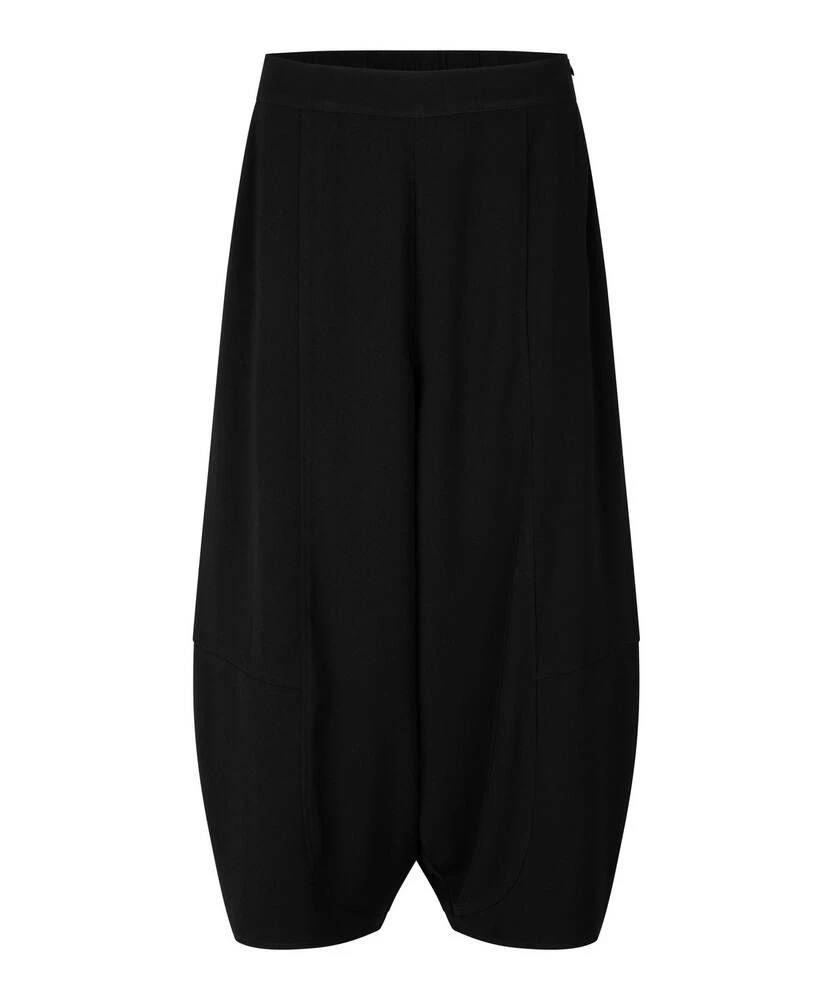 Naisten leveälahkeiset housut miellyttävän väljällä mitoituksella. Toisessa sivusaumassa on pukemista helpottava piilovetoketju.