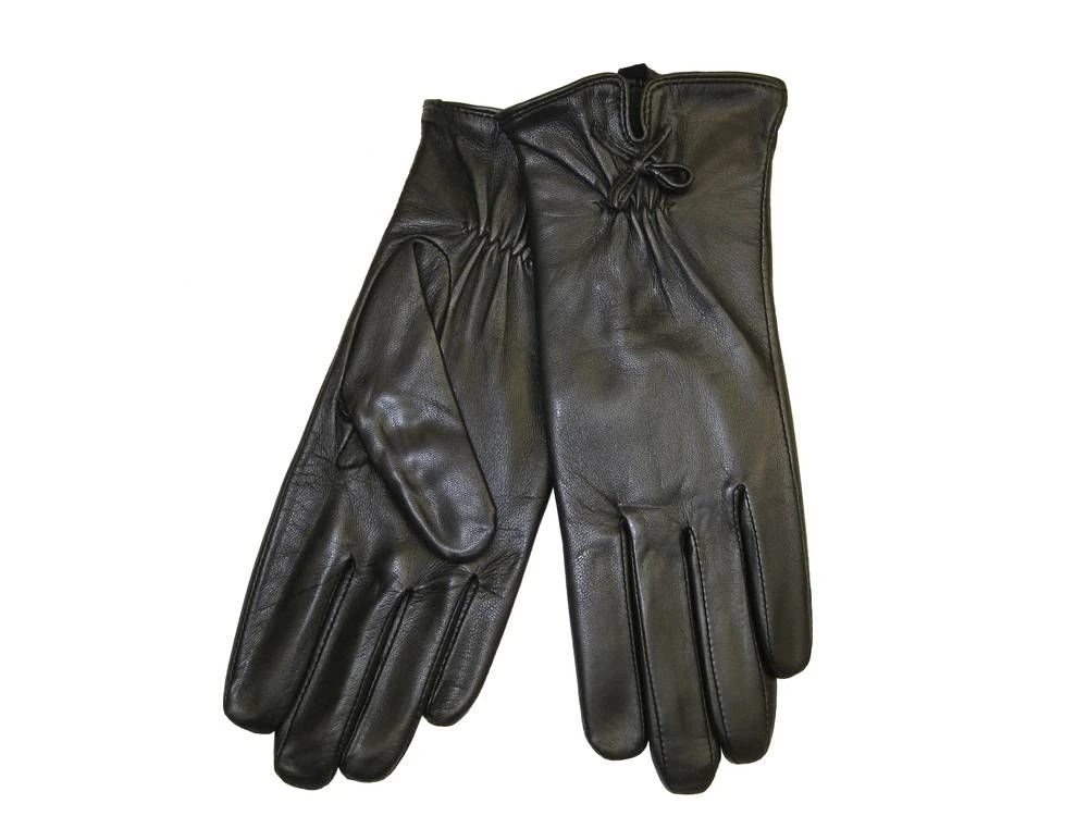 Naisten nahkakäsineet tyylikkäällä rusettisomisteella ja lämpimällä fleecevuorilla.