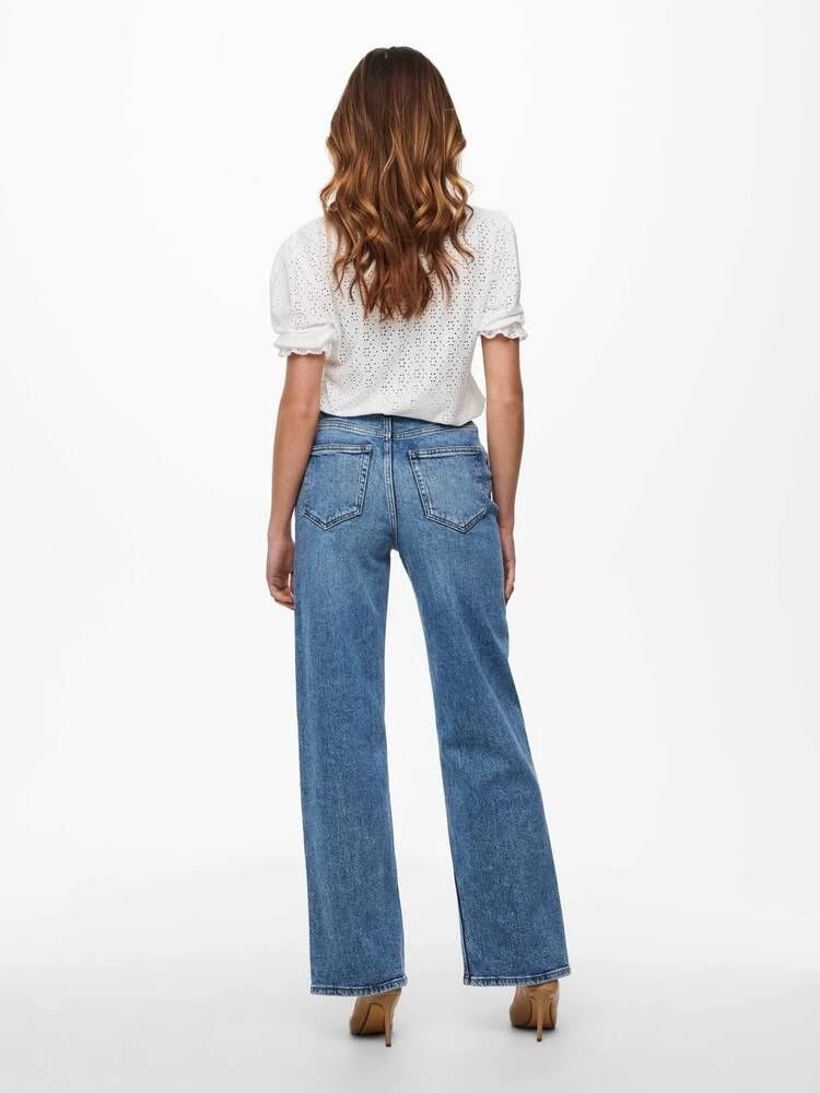 Tyylikkäät leveälahkeiset farkut etu- ja takataskuilla. Aavistuksen joustava materiaali parantaa istuvuutta ja lisää käyttömukavuutta.