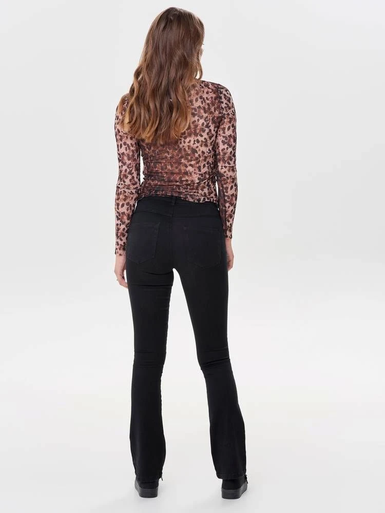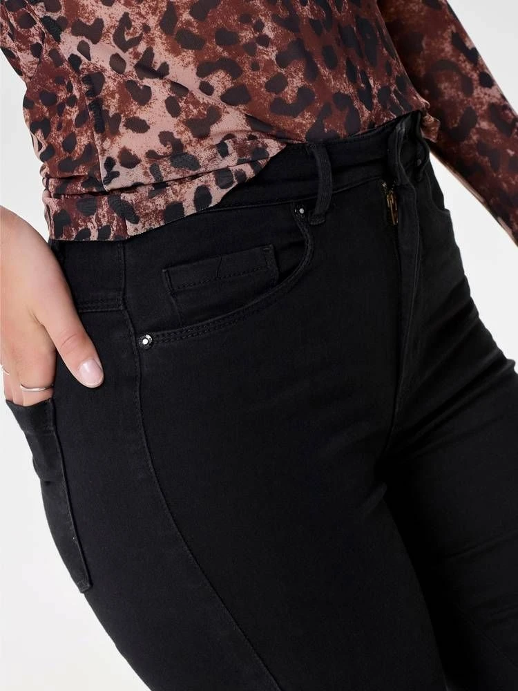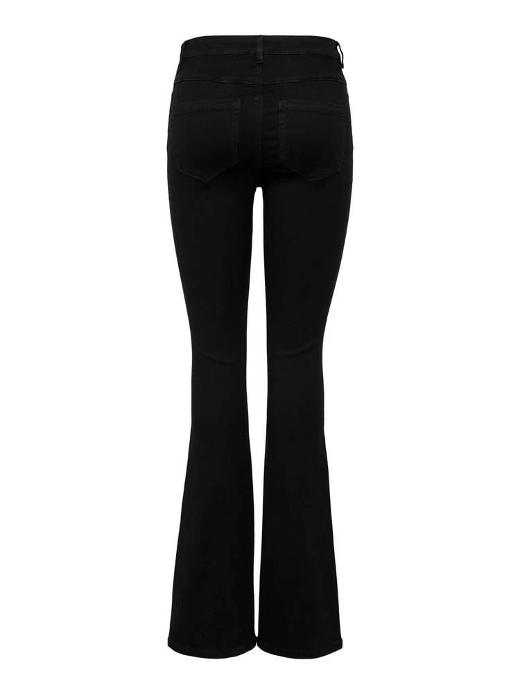 Tyylikkäät leveälahkeiset housut miellyttävän korkealla vyötäröllä sekä etu- ja takataskuilla. Joustava materiaali lisää farkkujen käyttömukavuutta.
