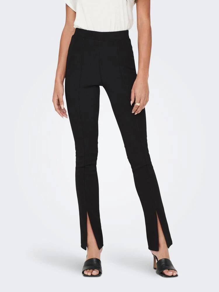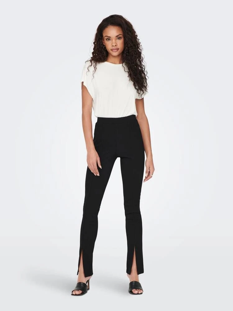 Naisten joustavat housut kuminauhavyötäröllä ja halkioilla.