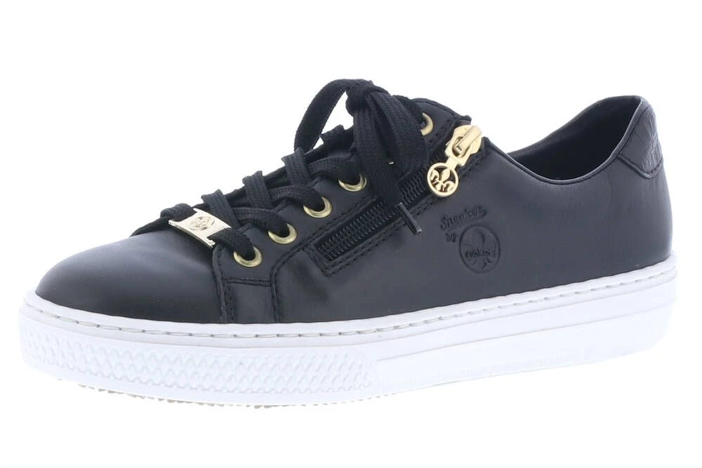 Naisten nahkaiset kävelykengät nauhoilla, ulkoreunan vetoketjuilla ja Memosoft-pohjallisilla.
