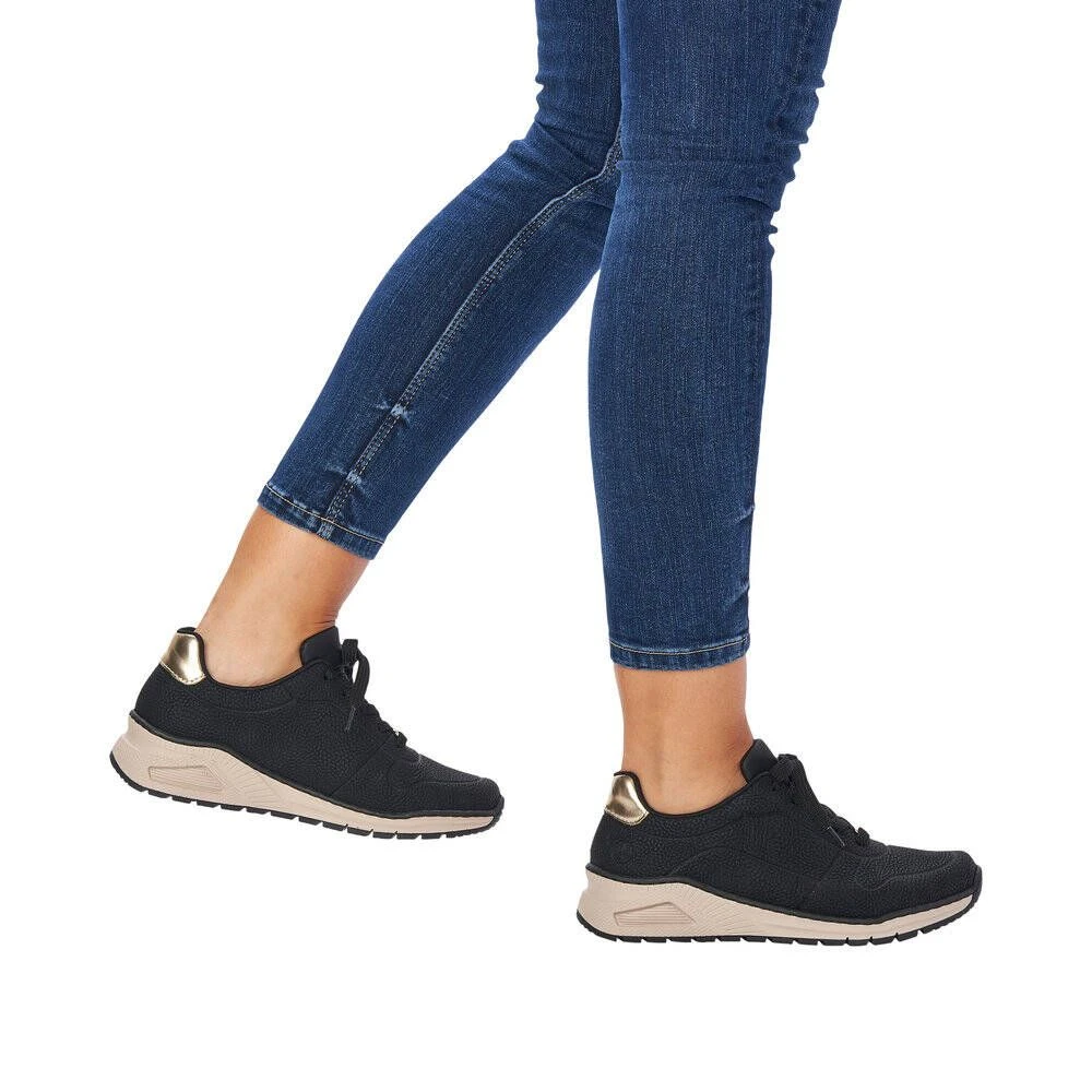 Naisten kiilapohjaiset tennarit nauhakiinnityksellä. Tukeva ulkopohja ja muotoiltu sisäpohja lisäävät käyttömukavuutta.