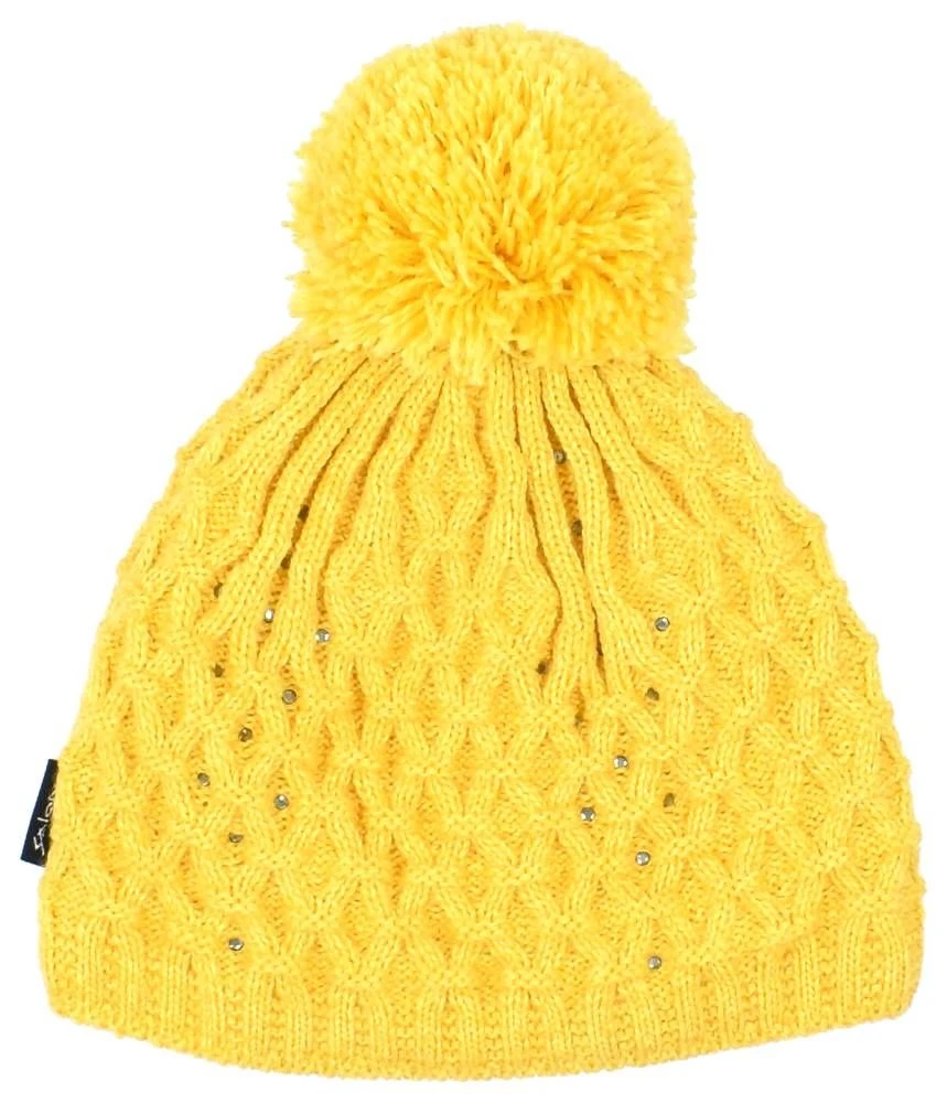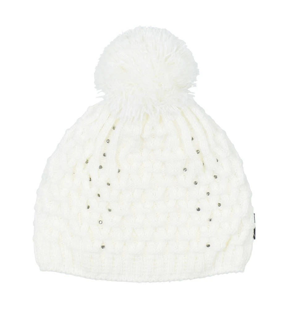 Pehmeä pipo upeilla timanttikoristeilla ja tyylikkäällä lankatupsulla.