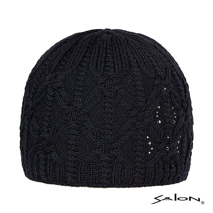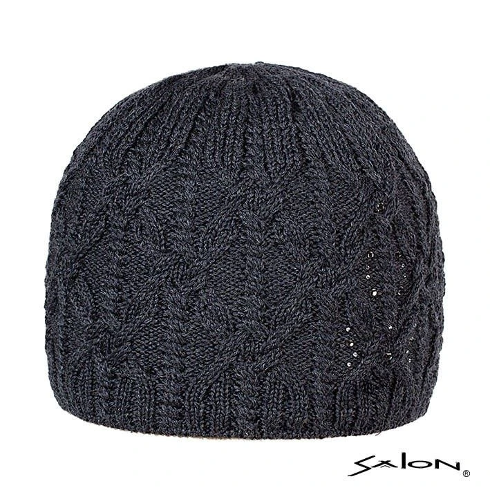 Lämmin palmikkokuosinen pipo kiiltävillä strassikoristeilla. Pipossa on 12 cm levyinen fleecevuori.