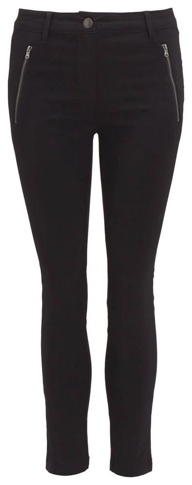 Soyaconceptin vajaamittaiset kapealahkeiset housut. Housujen edessä on vetoketjulliset somistetaskut. Koon 36 vyötärönympärys 72 cm, vyötärön korkeus 25 cm, lahkeen sisäsauman pituus 66 cm ja alisuun leveys 26 cm.