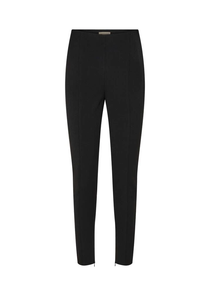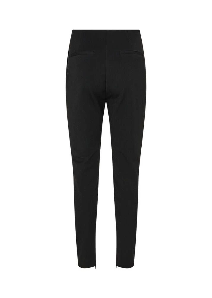 Naisten kapealahkeiset housut joustavasta materiaalista. Housuissa on vetoketjut lahkeissa sekä ylhäällä sivussa.