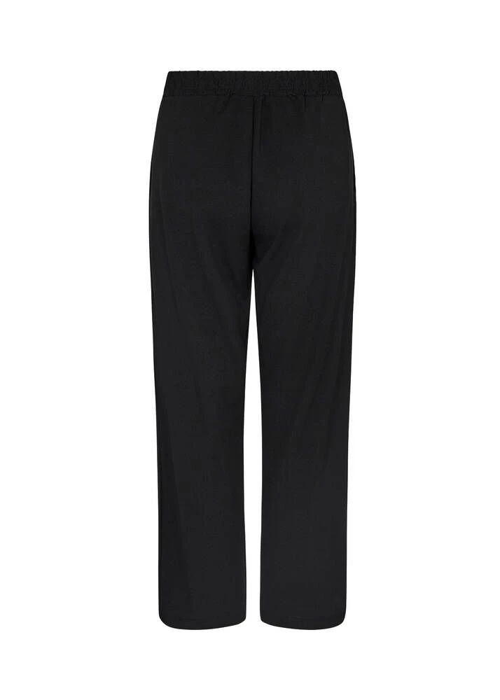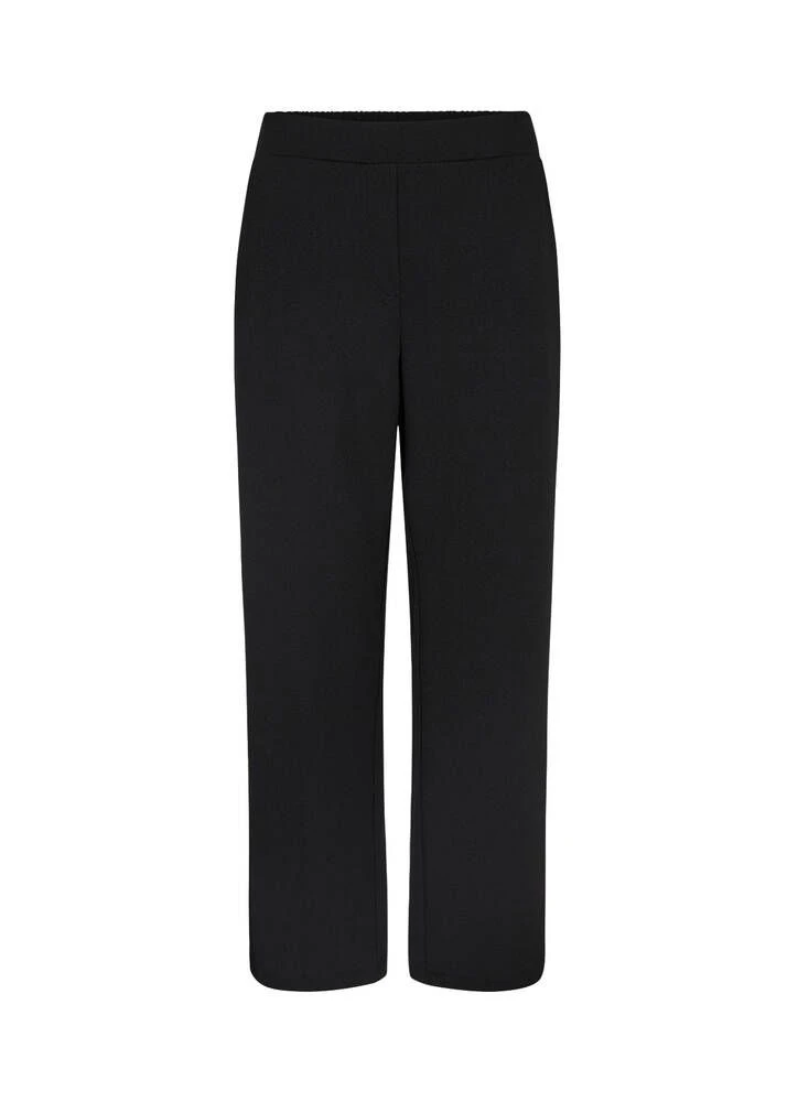 Naisten leveälahkeiset housut nilkkapituisilla lahkeilla. Housuissa on leveä vyötärökaistale, jossa on joustava takaosa.