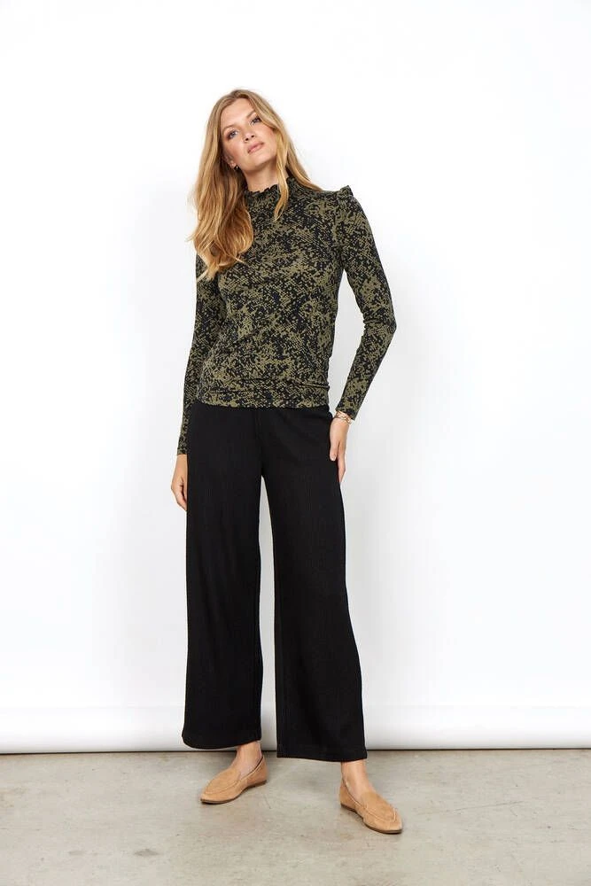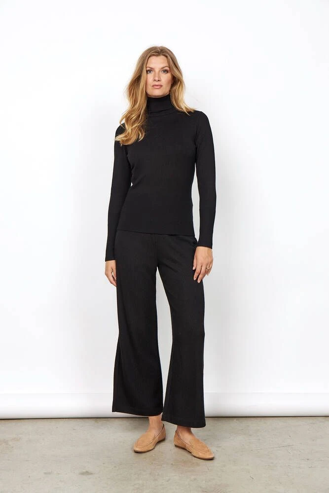 Naisten siistit neuloshousut leveillä lahkeilla.