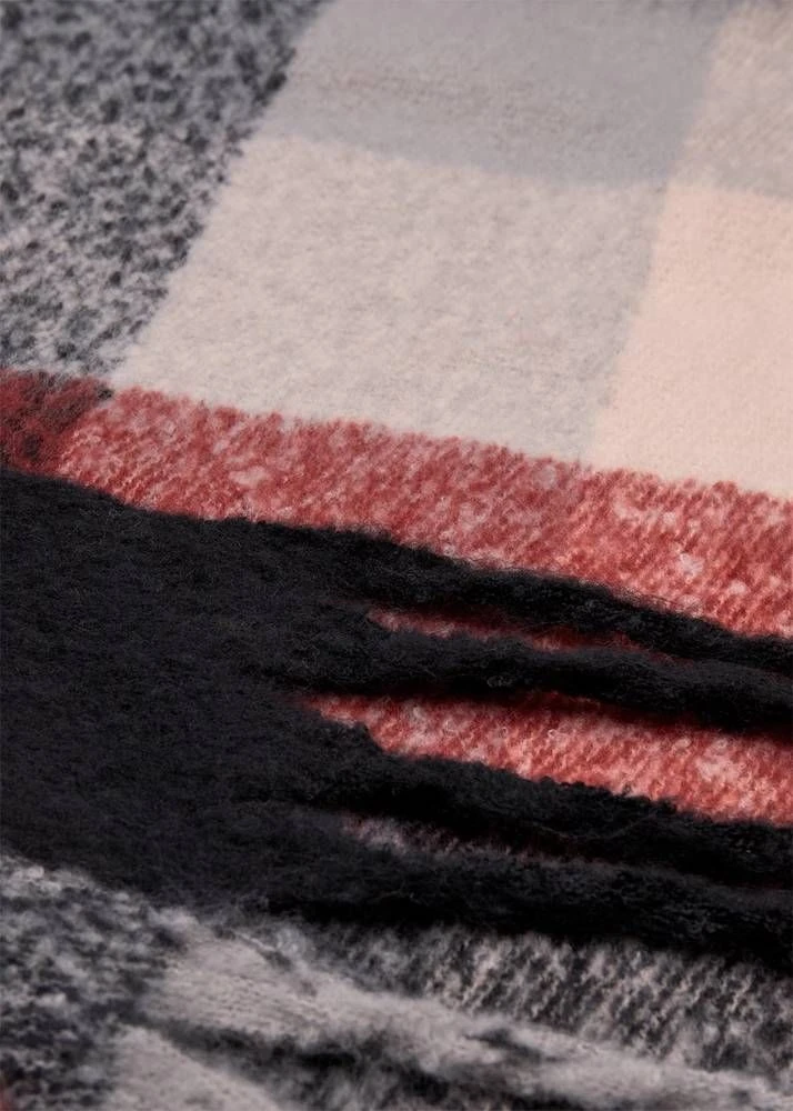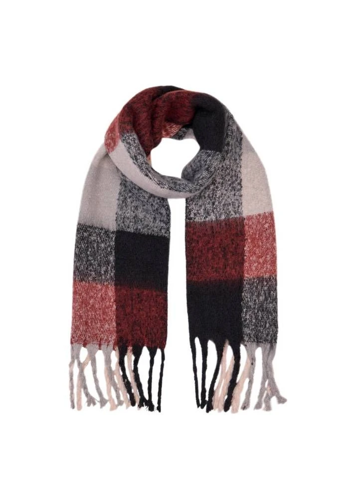 Lämmin ruutuhuivi paksuilla hapsuilla.