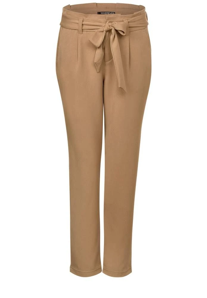 Miellyttävän joustavat yksiväriset housut taskuilla. Housujen vyötäröllä on solmittava nauhavyö.
