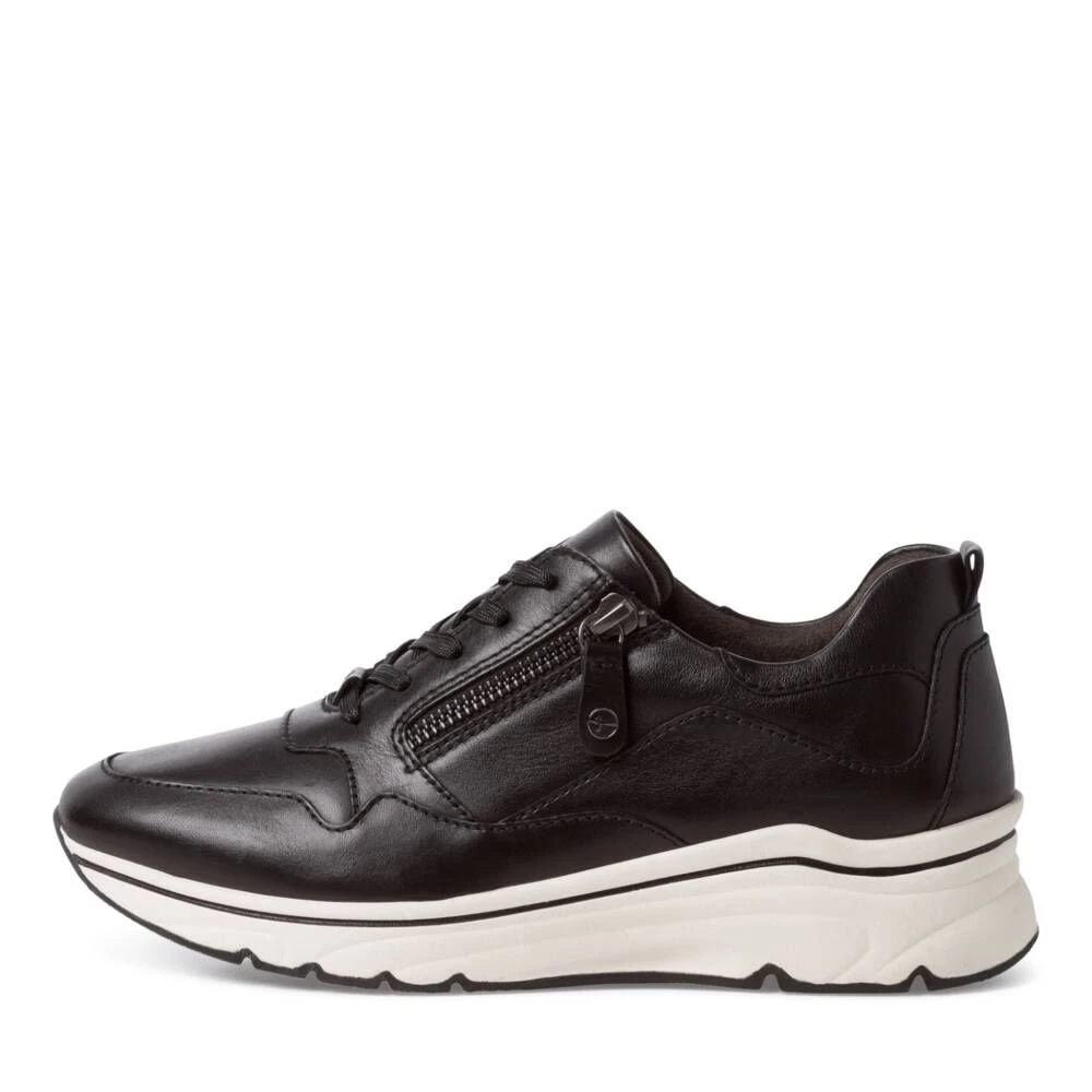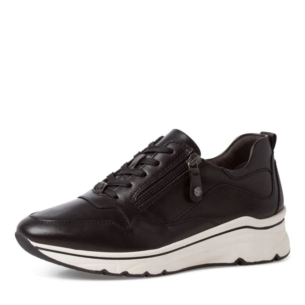Sporttiset kiilakorkotennarit nahkaisella pinnalla. Muotoiltu sisäpohja sekä pukemista helpottavat venykkeet lisäävät käyttömukavuutta.