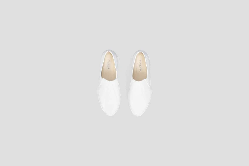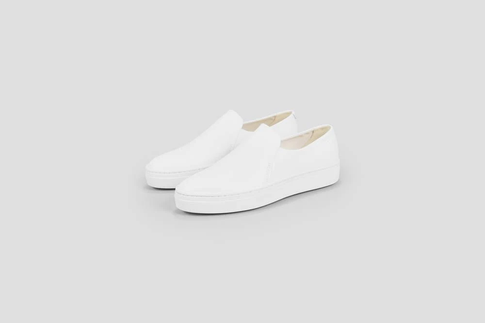 Tyylikkäät nahkapintaiset slip on-tennarit kapenevalla kärjellä. Läpän alla olevat venykkeet helpottavat tennareiden jalkaan pukemista.