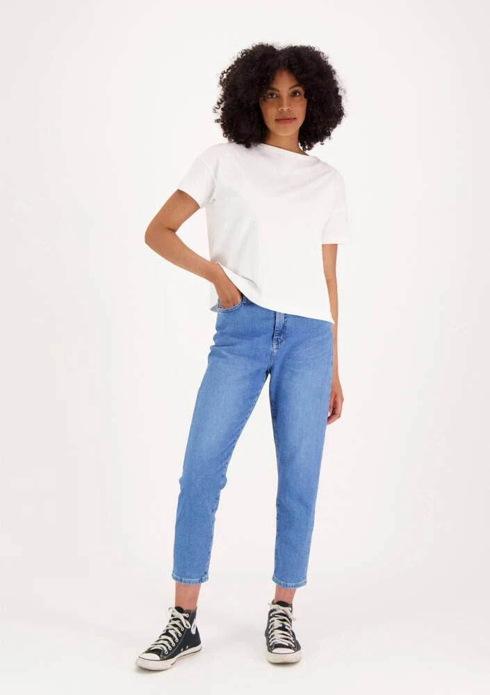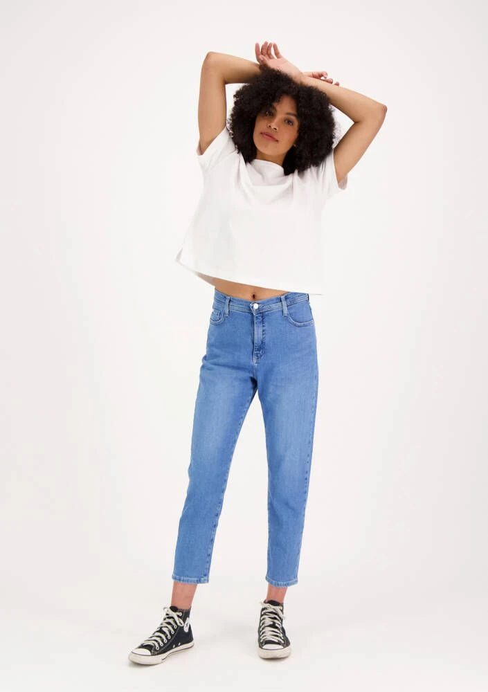 Rennot Mom fit –farkut korkealla high waist – vyötäröllä. Farkuissa on tilava ja rento istuvuus. Cropped ja tapered leg -lahje on reiden kohdalta leveä ja kapenee nilkkaa kohden. Kauttaaltaan tilava lahje antaa farkuille rennon ulkonäön. Ajankohtaisen lookin kruunaa, kun yhdistää farkut rennosti lenkkareihin! Ajaton keskisininen pesu, jossa kevyt kulutus. Kaikki Very Nice farkut suunnitellaan Suomessa ja valmistetaan Virossa.