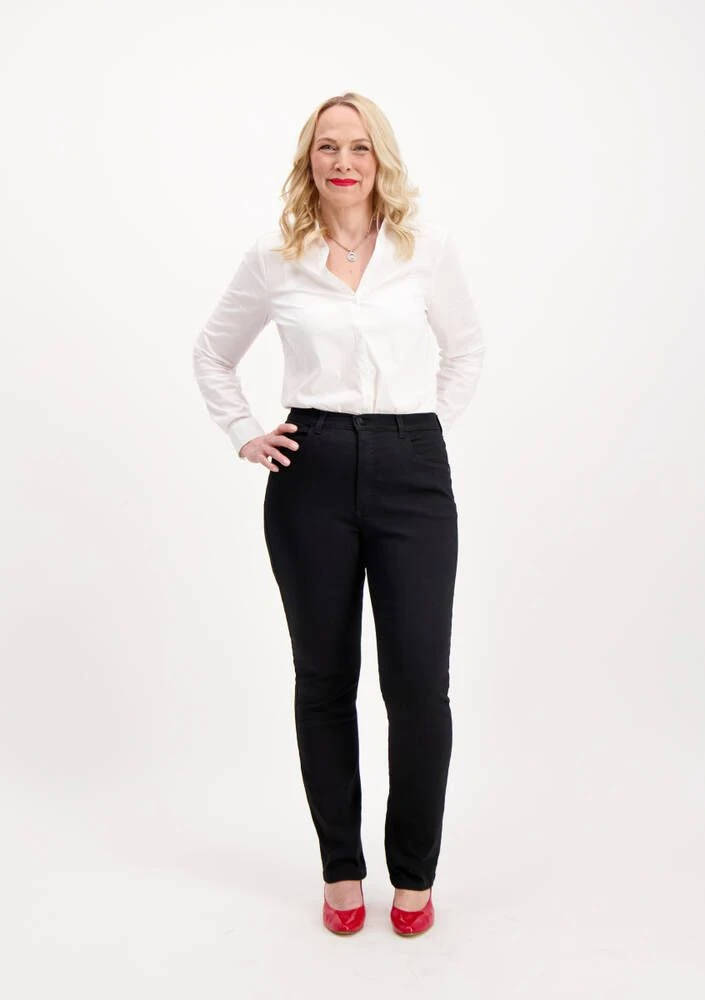Farkut kuin karkit. Erittäin naisellinen, kaunis ja näyttävä malli, joka saa päät kääntymään. Suora straight leg -lahjemalli antaa säärillesi lisäpituutta. Erittäin korkea high waist- vyötärö korostaa takamusta ja ryhtiä. Vyötärökorkeus on takaa korkeampi kuin edestä, joka parantaa housujen istuvuutta entuudestaan. Monikäyttöinen musta väri. Valmistettu Super Stretch –materiaalista, joka istuu kaikille vartaloille. Erittäin joustavan materiaalin johdosta suosittelemme ottamaan yhden koon omaa kokoa pienemmät housut. Kaikki Very Nice farkut suunnitellaan Suomessa ja valmistetaan Virossa.