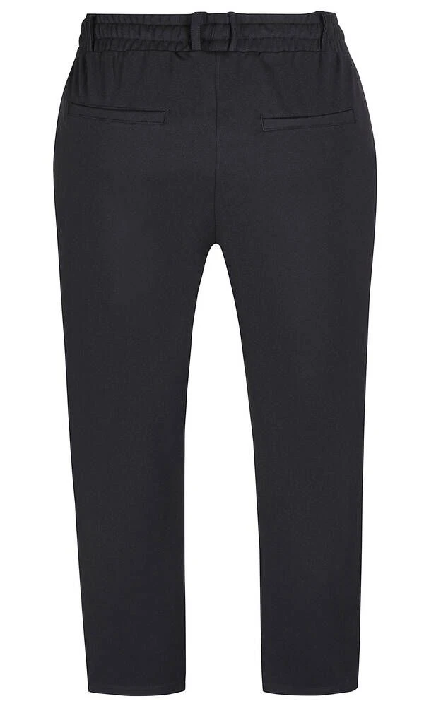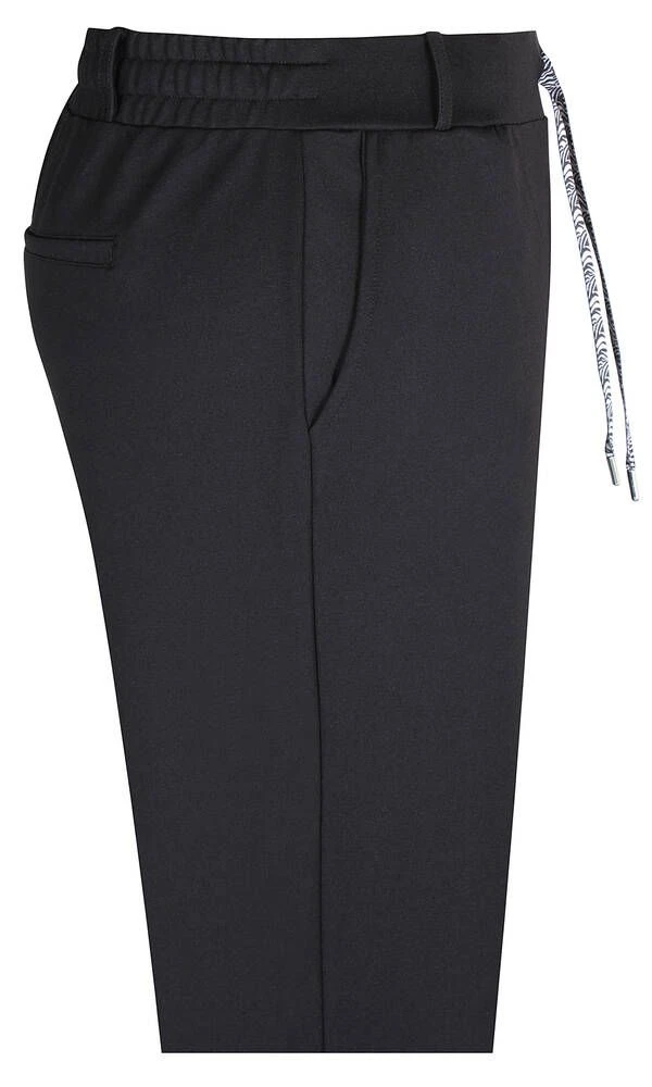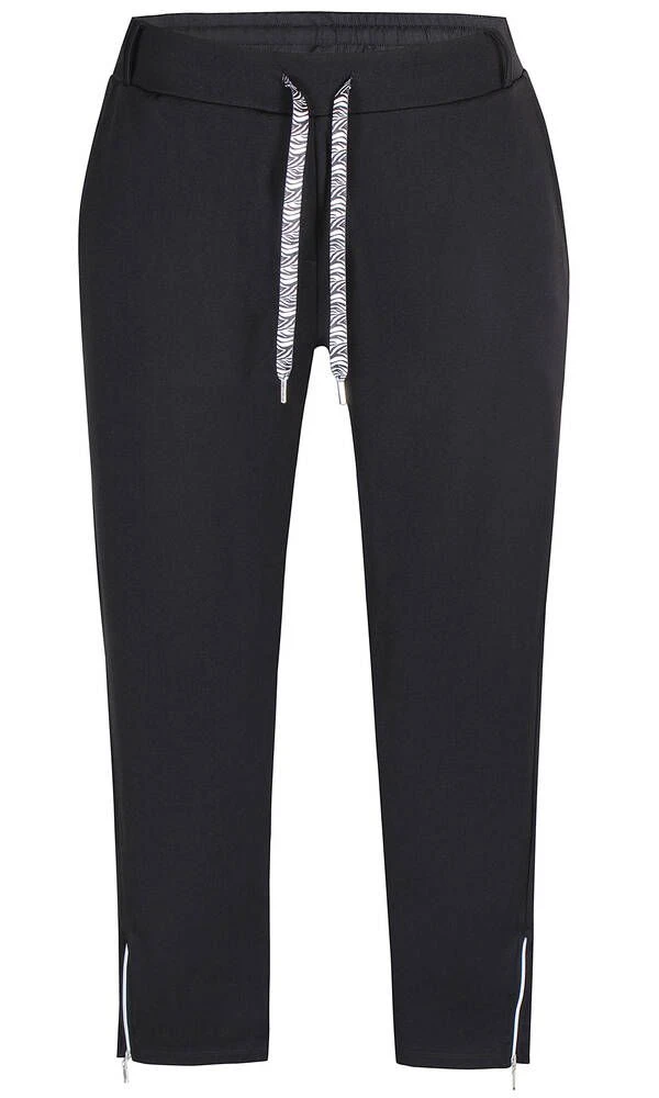 Naisten joustavat housut taskuilla. Housuissa on lahkeissa vetoketjut.